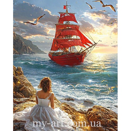 Купить My-Art Алмазная вышивка 50 х 40 см на подрамнике Алые паруса (+ стразы голограмные +FD) (арт. TNG1794)