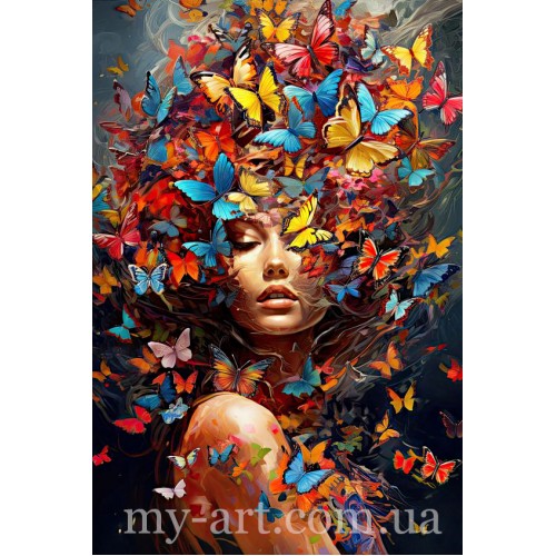 Теги: Алмазная мозайка на подрамнике Девушка в бабочках (+ стразы AB + FD) 40 х 60 см (арт. TNG1675), My-Art