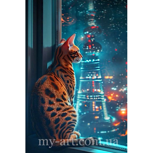 Теги: Алмазная выкладка на подрамнике Огни ночного города за окном (+ стразы AB + FD) 40 х 60 см (арт. TNG1764), My-Art