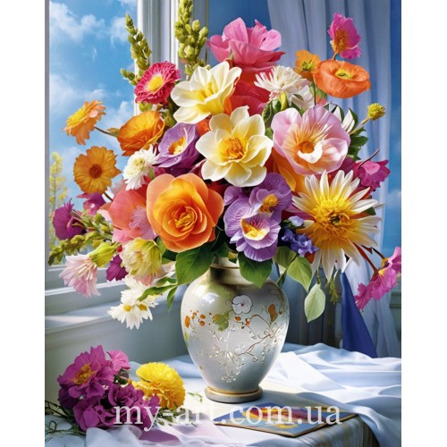 Теги: Алмазна мозаїка на підрамнику Різнокольоровий букет (+ стрази АБ) 40 х 50 см (арт. TNG1666), My-Art