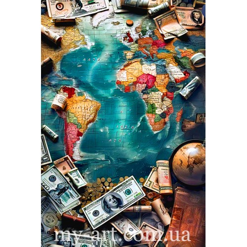Теги: Алмазна вишивка на підрамнику Світ і гроші (+ стрази AB + FD) 40 х 60 см (арт. TNG1676) повне викладення, My-Art