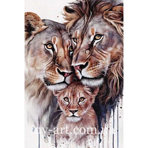Купити Алмазна мозаїка круглі стрази на підрамнику Сім'я левів (+стрази AB+FD) 40 х 60 см (арт. AR-3309) без коробки