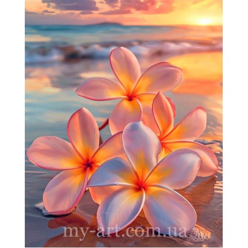 Купити Алмазна мозаїка круглі стрази на підрамнику Франжипані на березі моря (+стрази AB+FD) 40 х 50 см (арт. AR-3350) без коробки